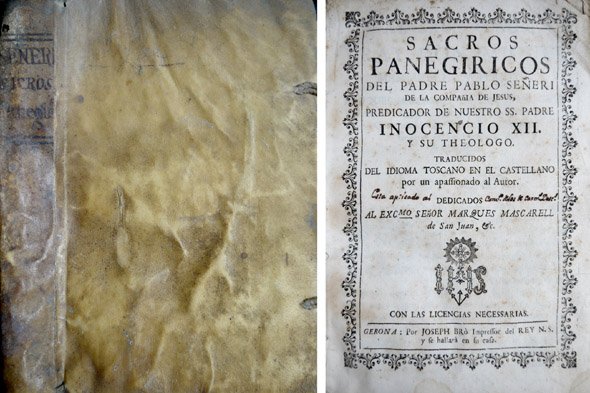 Gerona, por Joseph Brò, s.a. (1766). 4to.; 6 hs., 344 pp., 8 hs. Encuadernación de la época en pergamino.