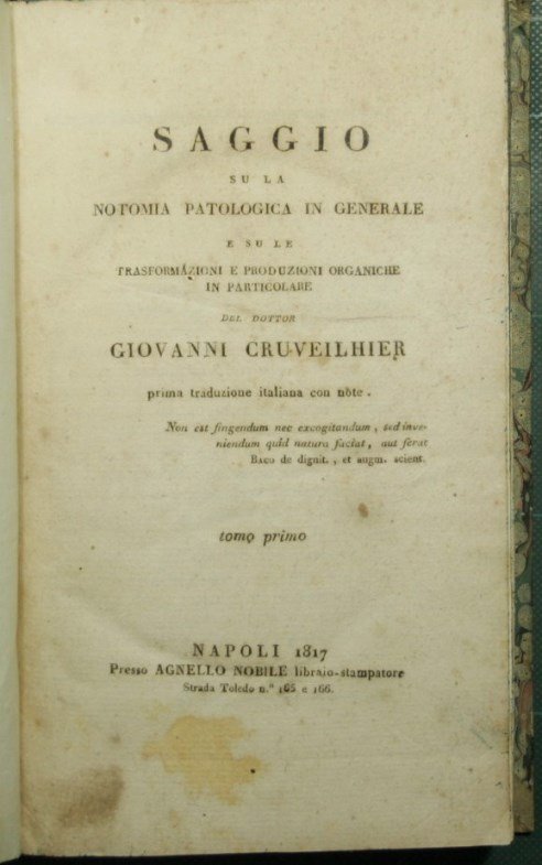 Saggio su la notomia patologica in generale e su le trasformazioni e produzioni organiche in particolare | Rare and modern books | Cruveilhier Giovanni