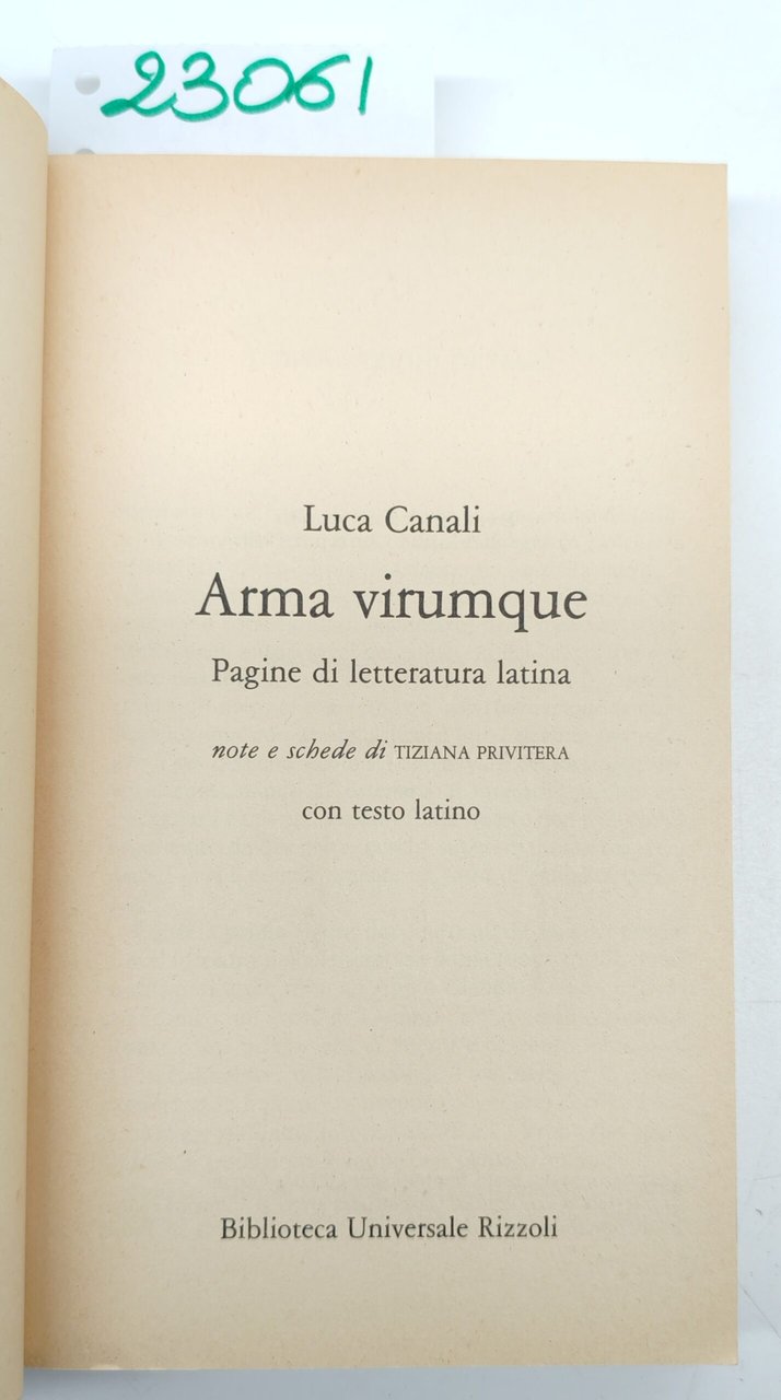 Saggistica BUR Luca Canali Arma Virumque BUR Rizzoli 1° edizione 1988