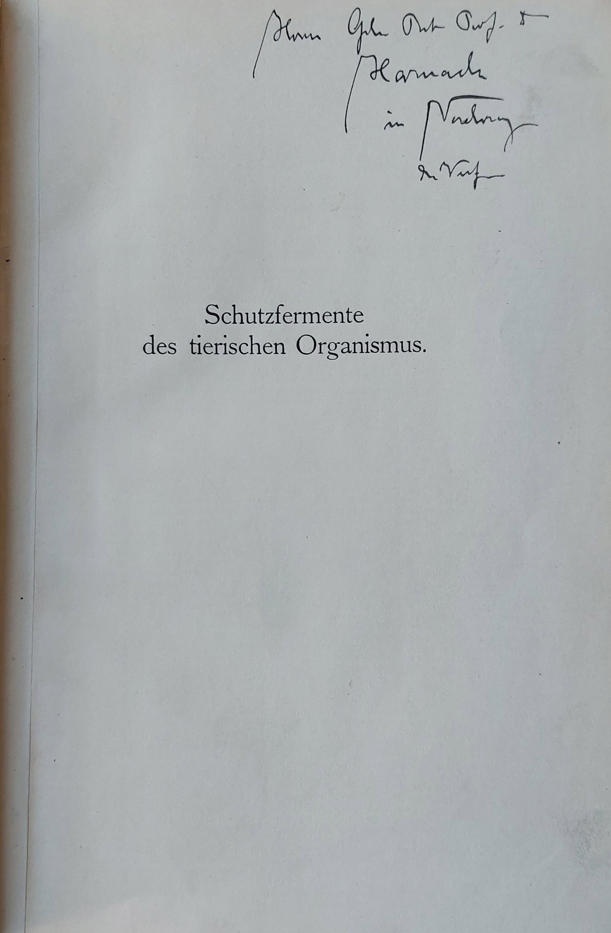 Schutzfermente des tierischen Organismus. | Rare and modern books | Abderhalden, Emil