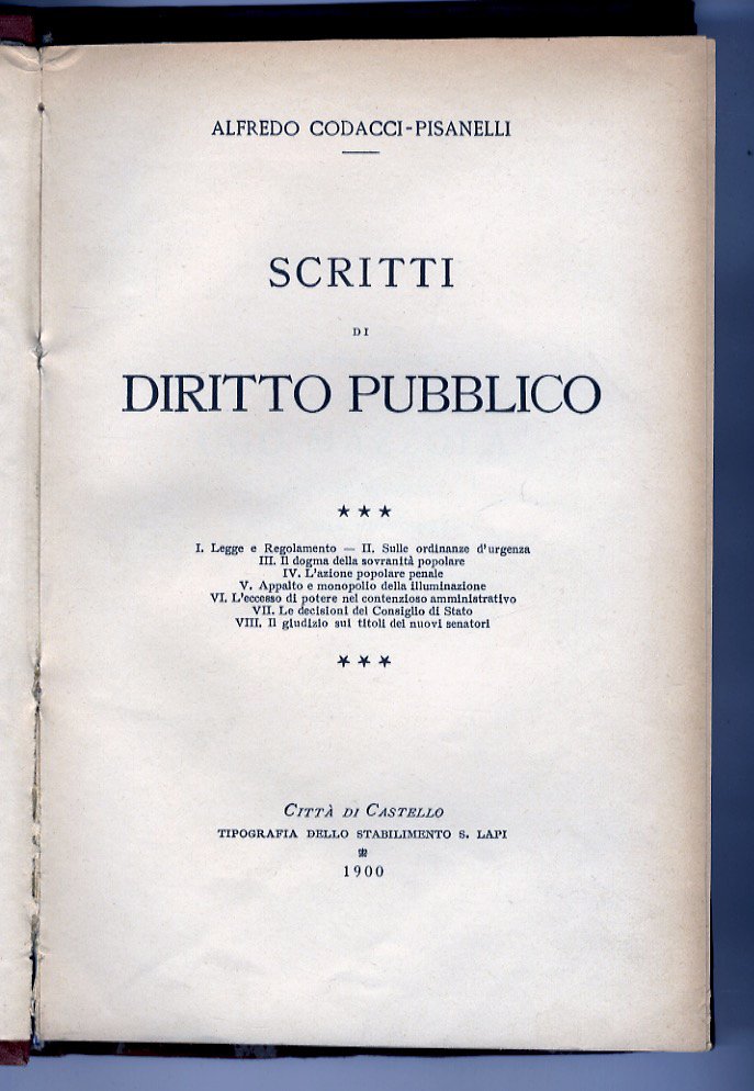 Scritti di diritto pubblico. [.]. | Rare and modern books | Codacci-Pisanelli Alfredo.