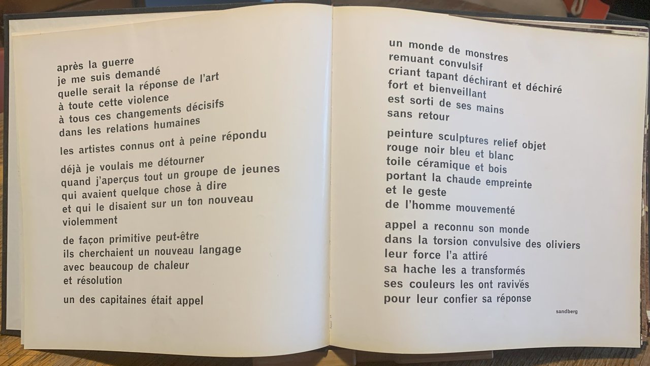 I ed.. Collezione senza nome diretta da Ezio Gribaudo. VIII grande oblungo, (72), cart., sovraccoperta illustrata a colori ai piatti. Illustrazioni a colori e in b/n. Fotografie di Francesco Aschieri. Stato buono. Indice: s.t.; Sandberg (in francese) - Diario di Ulisse a Roseland; di Michele L. Straniero - Biografia di Karel Appel - Mostre personali (1946-62) - Mostre collettive (1946-62) - Premi ufficiali (1954-60) - Affreschi, vetrate, ecc. (1949-60) - Libri illustrati da Karel Appel - Principali musei ove figurano le sue opere - Principali collezioni private - Principali articoli e libri dedicati ad Appel (1949-62).