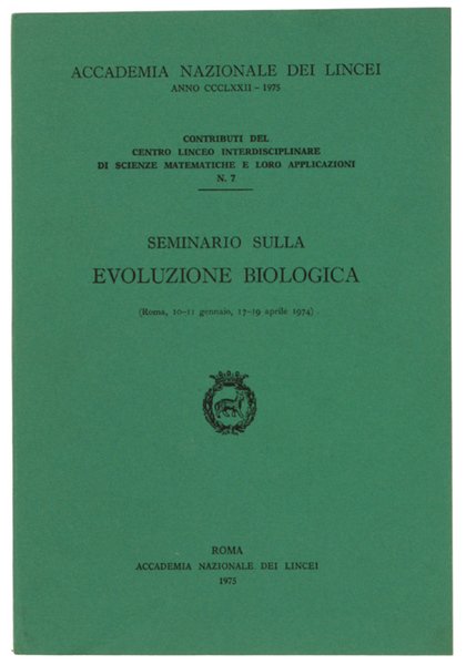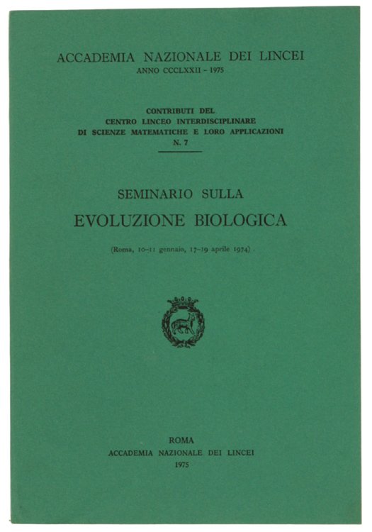 SEMINARIO SULLA EVOLUZIONE BIOLOGICA. Roma, 10-11 gennaio, 17-19 aprile 1974. | Rare and modern books | Autori Vari.