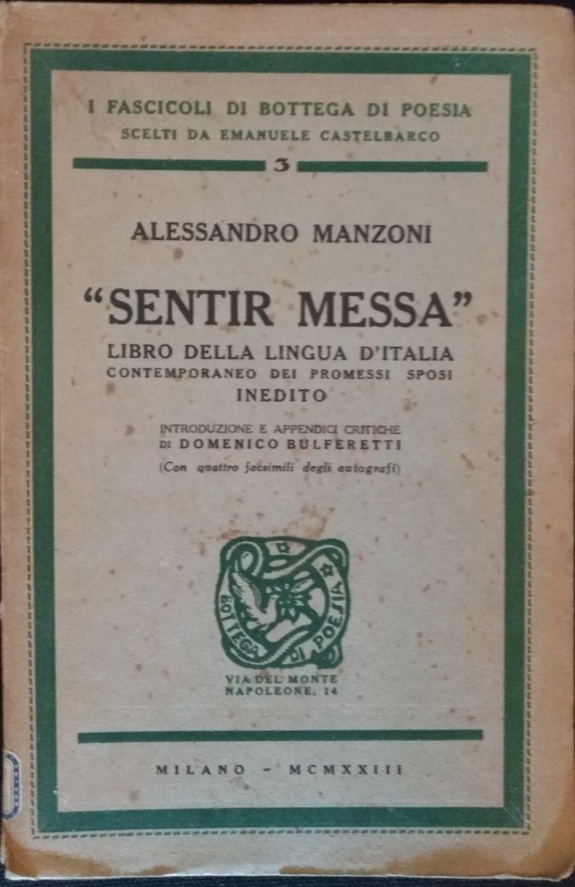 Sentir Messa. Libro della lingua italiana contemporaneo dei Promessi Sposi. Inedito | Rare and modern books | Alessandro Manzoni, ,Alessandro Manzoni