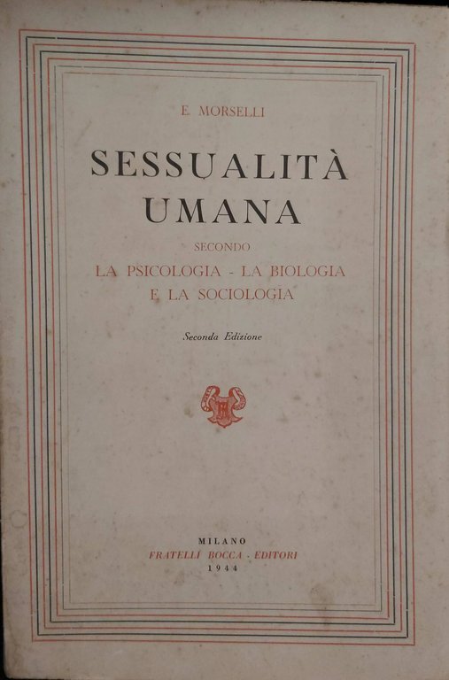 SESSUALITA' UMANA seconda la psicologia, la biologia e la sociologia. | Rare and modern books | Morselli E.