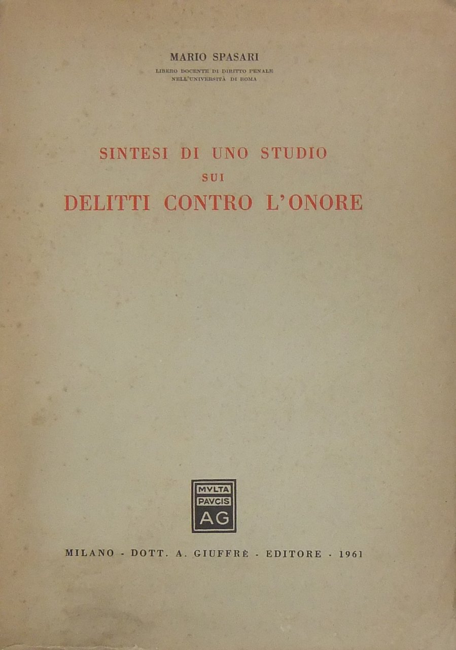 Sintesi di uno studio sui delitti contro l'onore | Rare and modern books | Spasari Mario