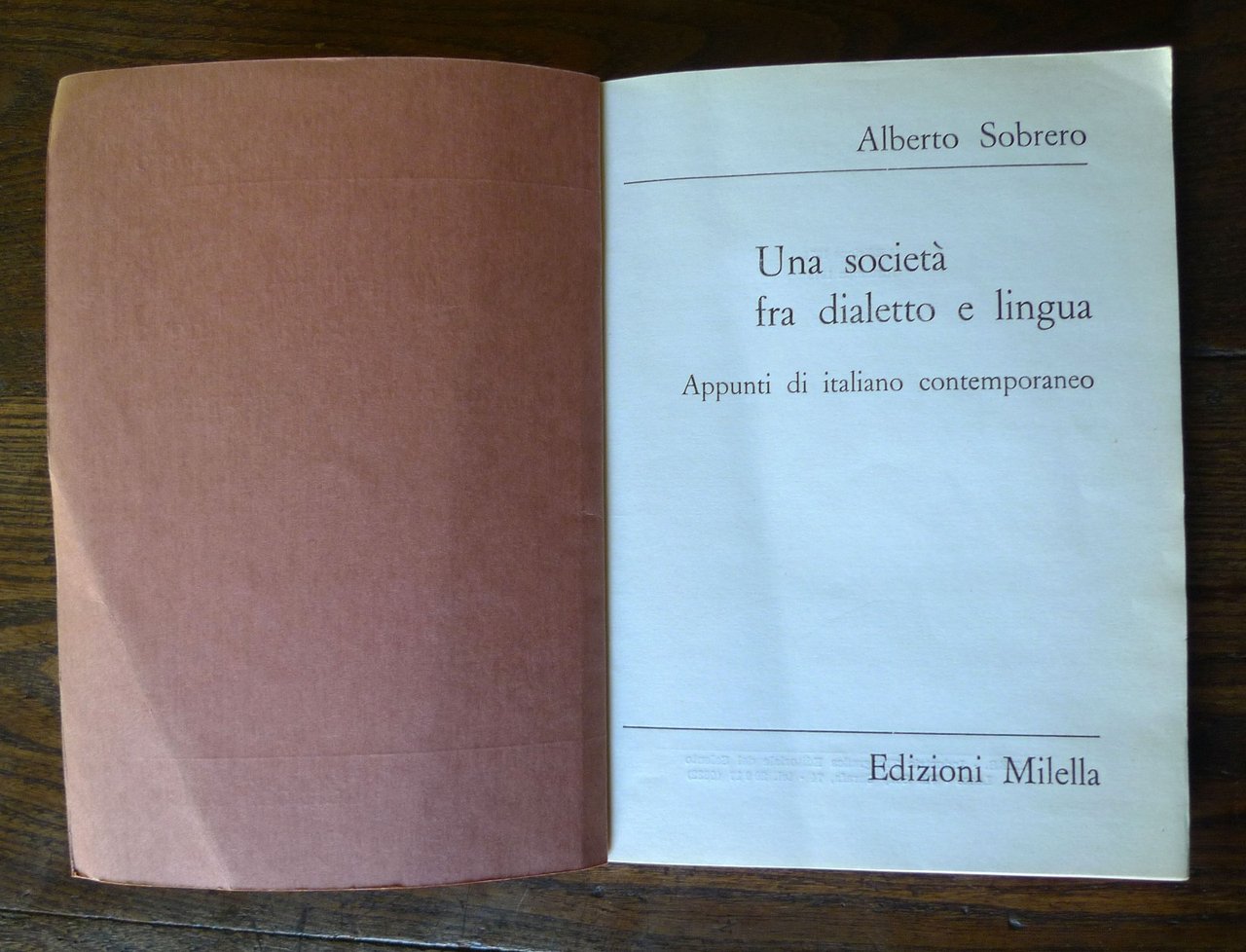Sobrero,UNA SOCIETÀ FRA DIALETTO E LINGUA.Appunti di italiano contemporaneo,1975 | Rare and modern books |