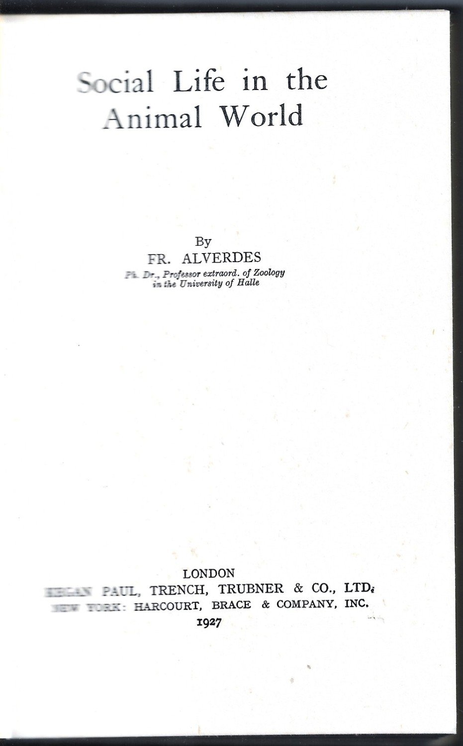 Social Life in the Animal World | Rare and modern books | Alverdes Fr., Alverdes FR.