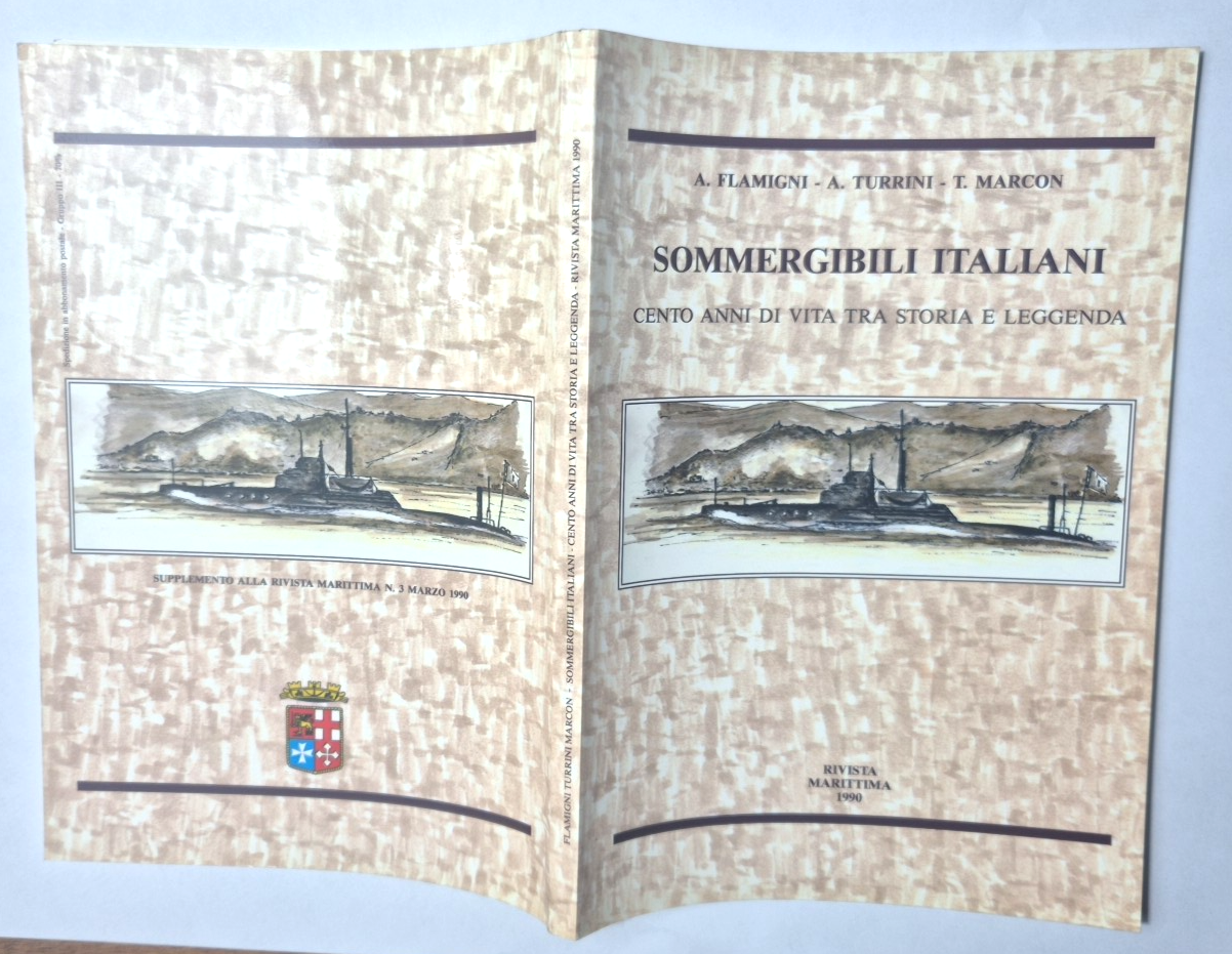SOMMERGIBILI ITALIANI — Cento anni di vita tra storia e leggenda di Antonio Flamigni, Alessandro Turrini, Tullio MarconRivista Marittima editore, Supplemento n. 3 marzo 1990, 1990.161 pagine. Numerose illustrazioni in bianco e nero nel testo. Copertina editoriale in brossura illustrata. Prima edizione. Stato di conservazione: OTTIMO