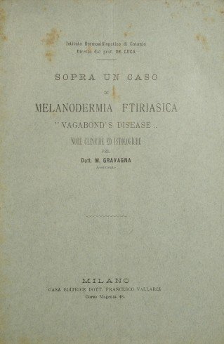 Sopra un caso di melanodermia ftiriasica. Vagabond's disease | Rare and modern books | Gravagna Giuseppe