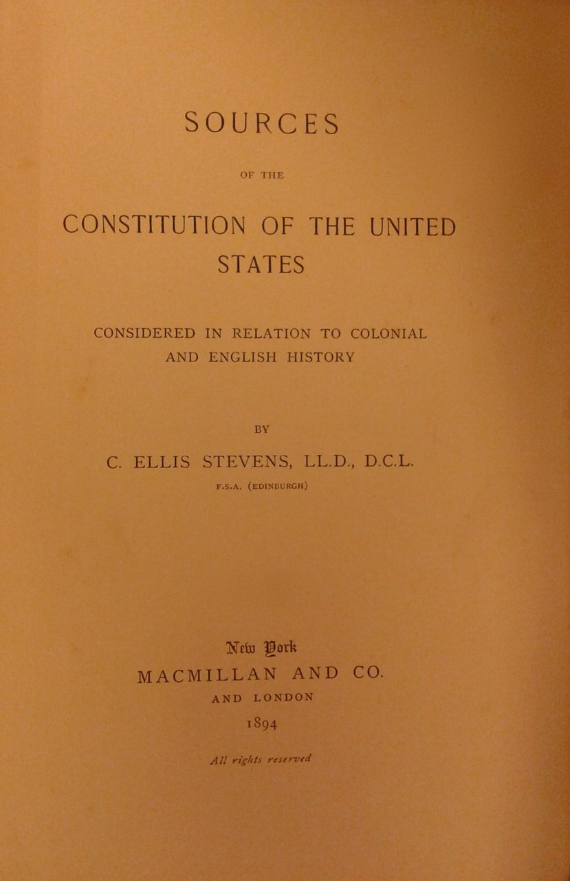 Sources of the Constitution of the United States considered in relation to colonial and english history | Rare and modern books | Ellis Stevens C.