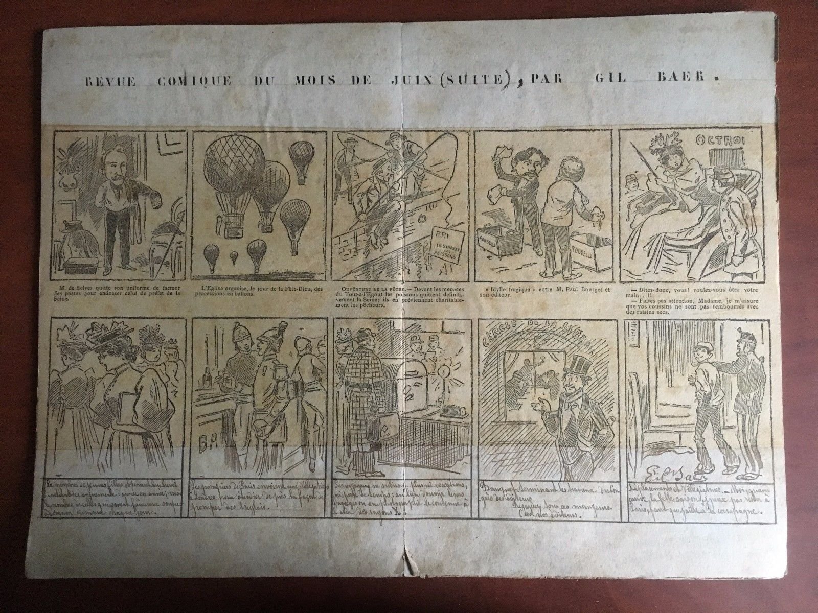 LE SUPPLÉMENTStampa originale fine '800 su cartoncino coevopagina centrale di Le SupplémentREVUE COMIQUE DU MOIS DE JUIN (suite) par Gil Baerformato stampa 24x40 cmformato con cartoncino 30x40 cm (30 g circa)in ottimo stato come da foto salvo strappo nel segno di piega del bordo inferioreE22483