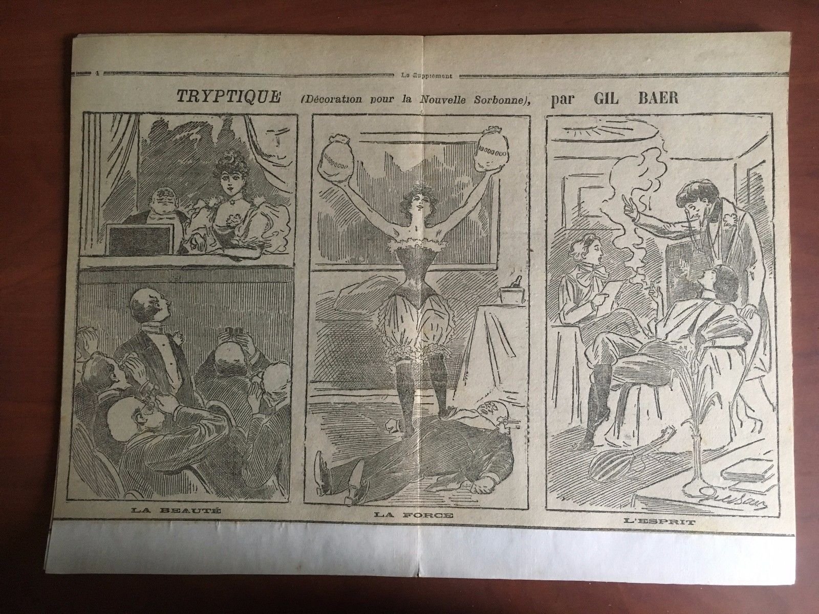 LE SUPPLÉMENTStampa originale fine '800 su cartoncino coevopagina centrale di Le SupplémentTRYPTIQUE (Decoration pour la Nouvelle Sorbonne) par Gil Baerformato stampa 27x40 cmformato con cartoncino 30x40 cm (30 g circa)in ottimo stato come da foto E22484