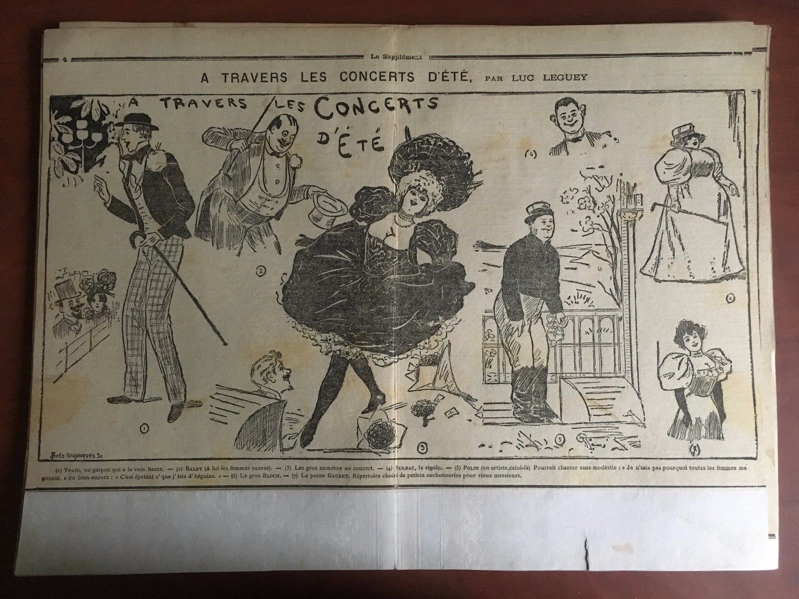 LE SUPPLÉMENTStampa originale fine '800 su cartoncino coevopagina centrale di Le SupplémentA TRAVERS LES CONCERTS D'ÉTÉ par Luc Legueyformato stampa 25,5x40 cmformato con cartoncino 30x40 cm (30 g circa)in ottimo stato come da foto salvo strappo nel bordo inferioreE22472