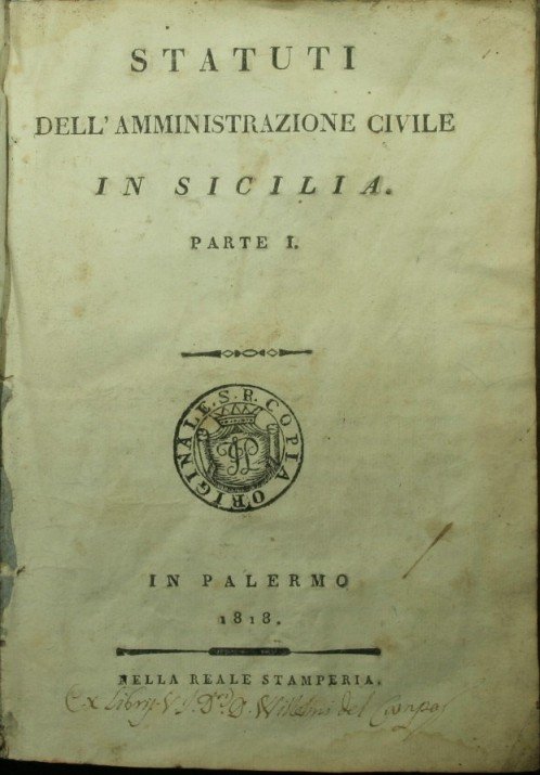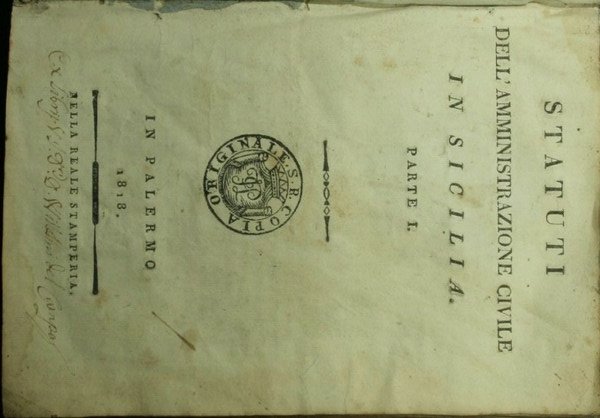 Statuti dell'amministrazione civile in Sicilia. Parte I | Rare and modern books | Anonimo