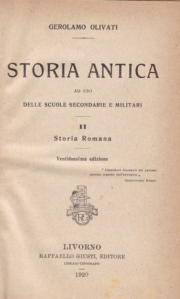 Storia antica. II. Storia romana. | Rare and modern books | Gerolamo Olivati, ,Gerolamo Olivati