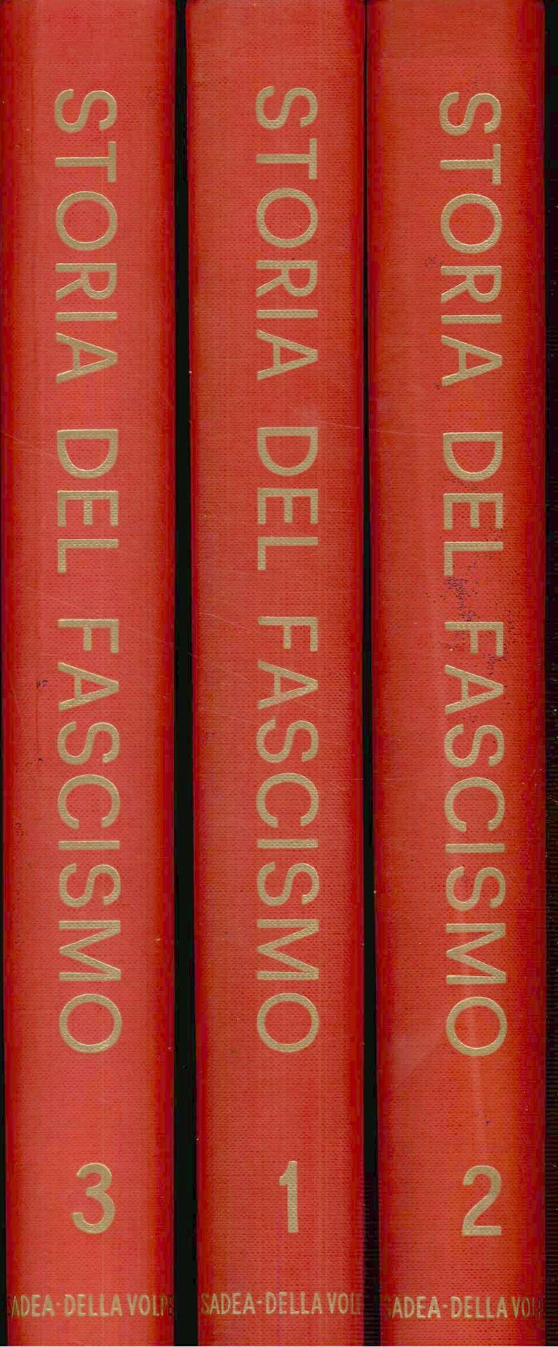 Enzo BIAGI (diretta da) – Storia del fascismo. Realizzazione grafica di Luigi Garonzi. Volume primo, secondo e terzo – 1964. Sadea editrice, Firenze; Tela editoriale con titoli dorati impressi al piatto e dorso; 4°, cm 30.5; 3 voll.; Pagg. 368; 638; 671; ottimo esemplare; Testo stampato su carta patinata con numerosissime ill. b/n f.t…