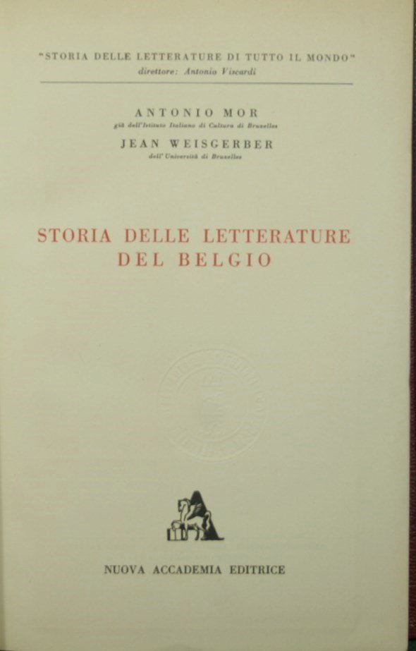 Storia delle letterature del Belgio | Rare and modern books | Mor Antonio - Weisgerber Jean
