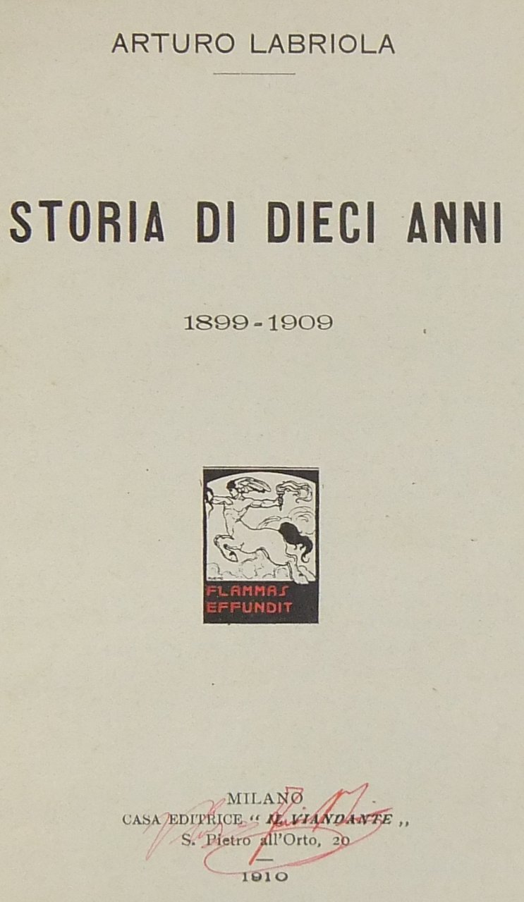 Storia di dieci anni (1899-1909) | Rare and modern books | Labriola Arturo (1873-1959)