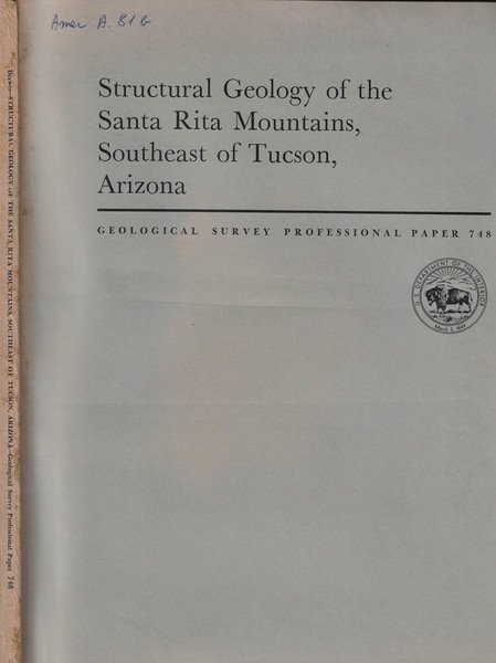 Structural Geology of the Santa Rita Mountains, Southeast of Tucson, Arizona | Rare and modern books | Harald Drewes