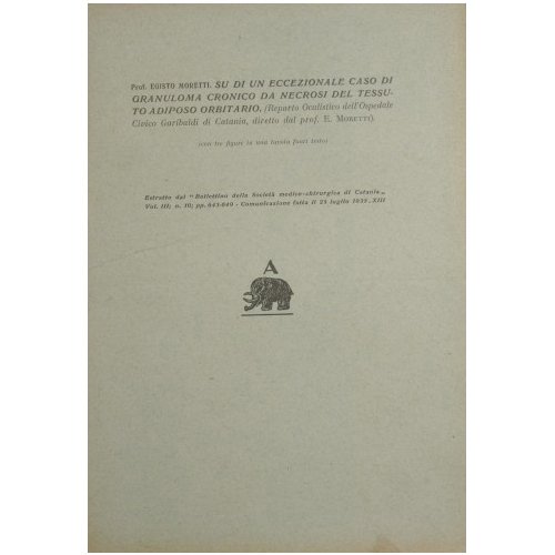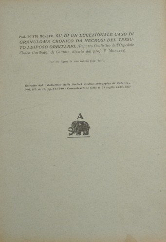 Su di un eccezionale caso di granuloma cronico da necrosi del tessuto adiposo orbitario | Rare and modern books | Moretti Egisto