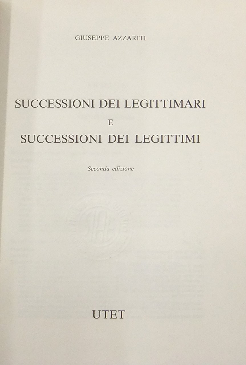 Successioni dei legittimari e successioni dei legittimi | Rare and modern books | Azzariti Giuseppe