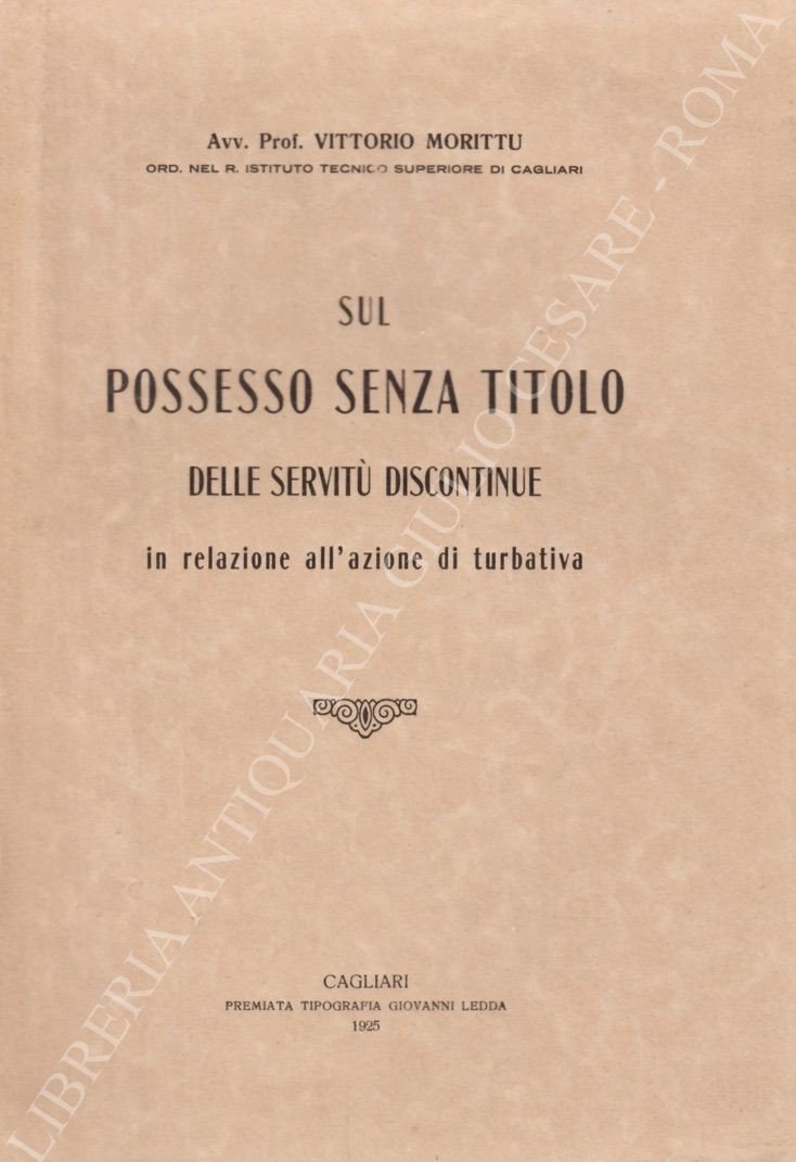 Sul possesso senza titolo delle servitù discontinue in relazione all'azione di turbativa | Rare and modern books | Morittu Vittorio
