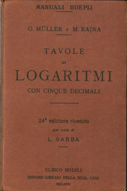 Tavole di Logaritmi con Cinque Decimali. [24°ed. Riveduta] | Rare and modern books | Muller O, Rajna M