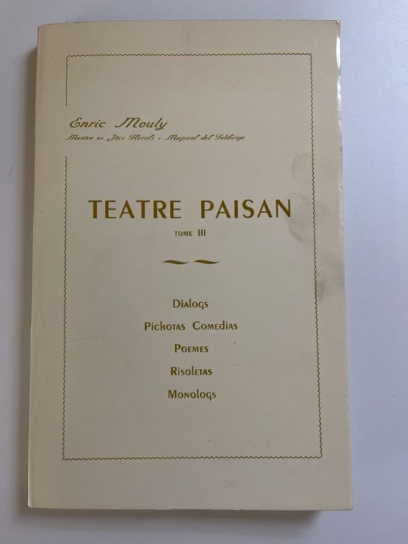Teatre paisan. Tome III . Dialogs - Pichotas Comedias - Poemes - Risoletas | Rare and modern books | Mouly Enric