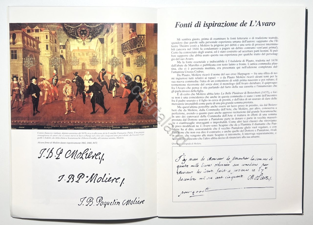 Teatro - Ugo Tognazzi in L'avaro di Molié,re - ed. 1988 ,Testo in italiano. Pagine 28 con illustrazioni.
