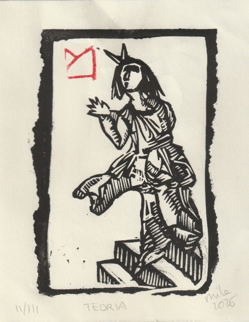 Linoleum, stampato a mano su carta Hahnemhle 150 g., esemplare II/III, matrice 90 x 120 mm, Isola di Redonda, 2026