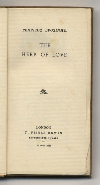 The Herb of Love. | Rare and modern books | Drosines Georgios [Autore] - Edmonds Elizabeth M. [Traduttrice].