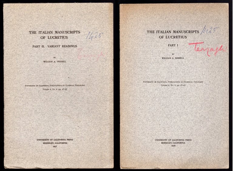 The italian manuscripts of Lucretius Voll. 2 | Rare and modern books | Merrill William A., Merrill William A.