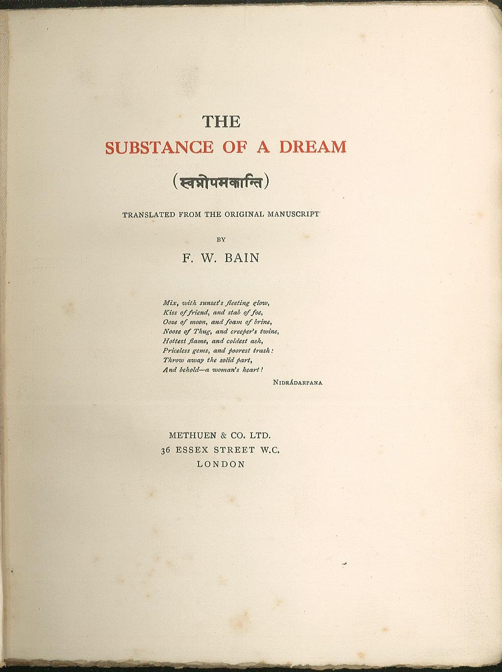 The substance of a dream | Rare and modern books | Bain F. W., Bain F. W.