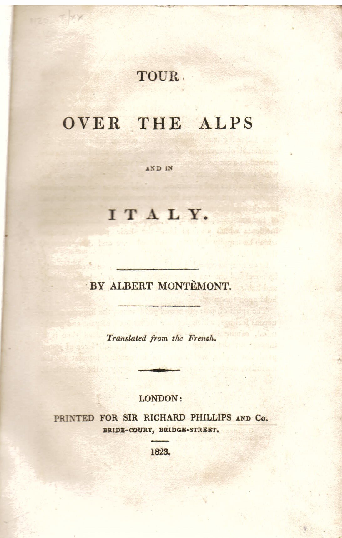 Tour over the Alps and in Italy. Translated from the French