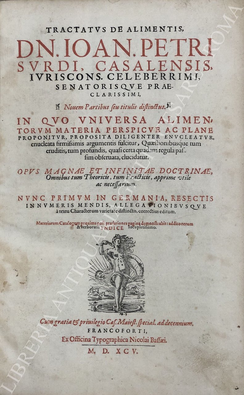 Tractatus de alimentis. Nouem Partibus seu titulis distinctus. In quo universa alimentorum materia perspicue ac plane. | Rare and modern books | Sordi Giovanni Pietro (M. 1598) - Surdi Ioannis Petri - Surdu Jo, Annis Petrus