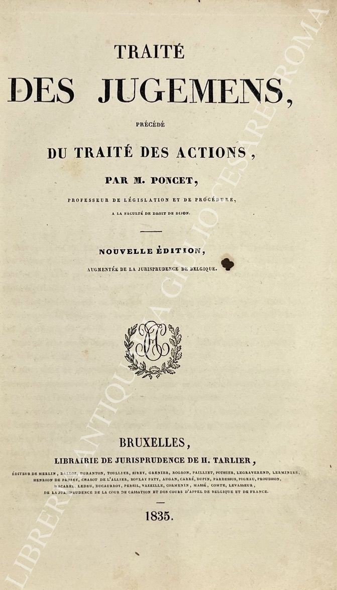 Traite des jugemens, precede du traite des actions | Rare and modern books | Poncet M.