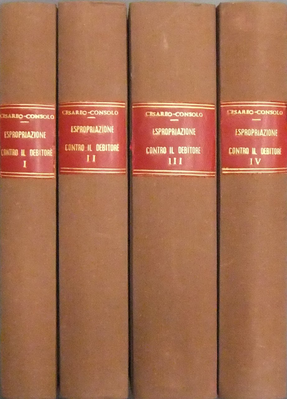 Trattato della espropriazione contro il debitore. Vol. I - Regole generali sull'esecuzione forzata. Esecuzione cambiaria. Esecuzione delle sentenze straniere. Vol. II - Esecuzione sopra i beni mobili. Voll. III e IV - Dell'esecuzione sopra i beni immobili | Rare and modern books | Cesareo Consolo Giovanni