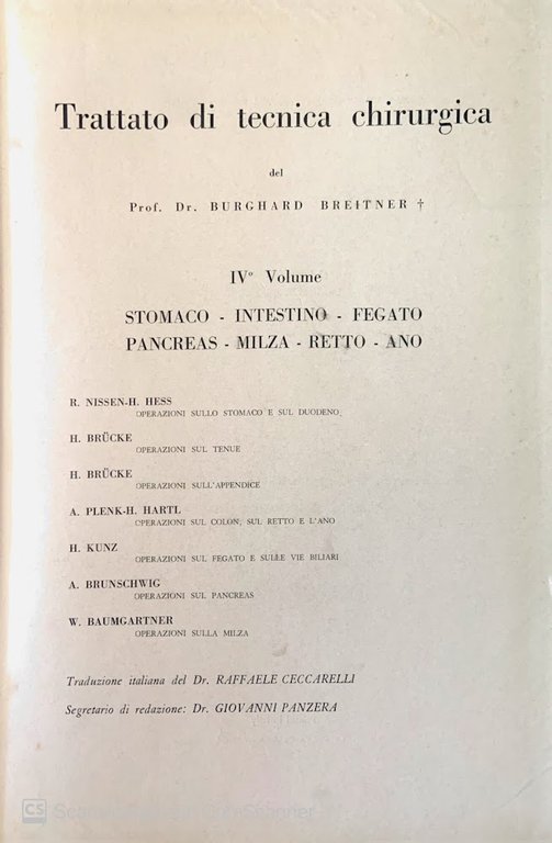 Trattato di tecnica chirurgica IV volume. Stomaco intestino fegato pancreas milza retto ano | Rare and modern books | Breitner Burghard, ,Breitner Burghard