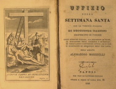 Uffizio della Settimana Santa con la versione italiana di Monsignor Martini, Arcivescovo di Firenze, colle rubriche volgari, gli argomenti de' Salmi,….dell'Abbate Alessandro Mazzinelli