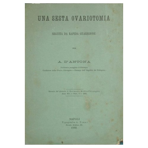Una sesta ovariotomia seguita da rapida guarigione | Rare and modern books | D'Antona A.