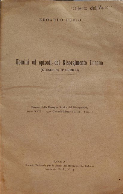 UOMINI ED EPISODI del Risorgimento Lucano (Giuseppe d'Errico). | Rare and modern books | Pedio Edoardo.