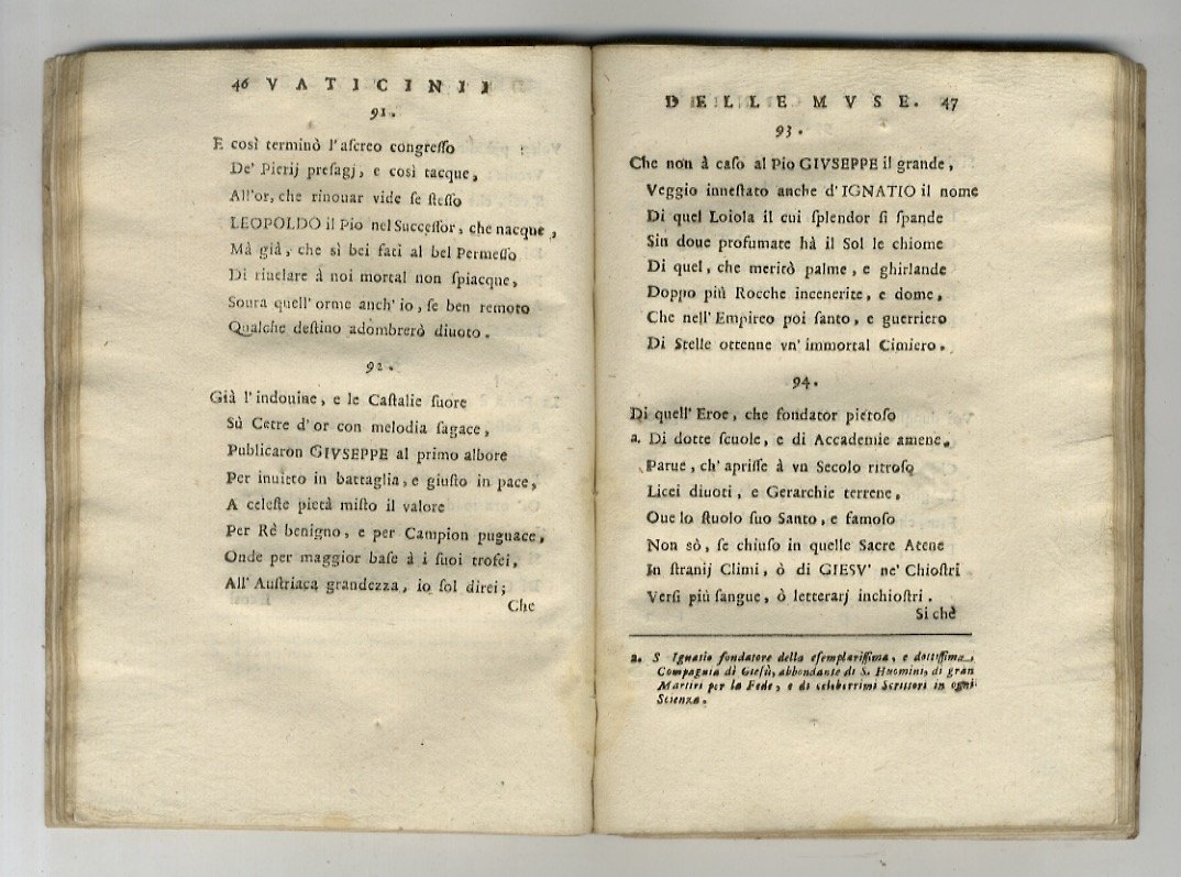 Vaticini delle Muse per la S. R. Maestà di Giuseppe d'Austria [.] Poema Geneatico di Giuseppe Piselli. [Legato con:] Piselli Giuseppe. Le meraviglie di Monaco. Oda di Giuseppe Piselli. Consacrata alla sereniss. elettorale altezza di Maria Antonia d'Austria [.]. [Legato con:] Piselli Giuseppe. Cupido scultore per le nozze delle sereniss. altezze Odoardo prencipe di Parma, &c. e Dorotea Sofia principessa di Neuburg [.] Oda epitalamica. Di Giuseppe Piselli. Consacrata alle medesime altezze [.] [Legato con:] Piselli Giuseppe. La Musa risvegliata. Oda [.] consacrata alla S. Real Maestà di Eleonora Regina di Polonia [.]. | Rare and modern books | Piselli Giuseppe.