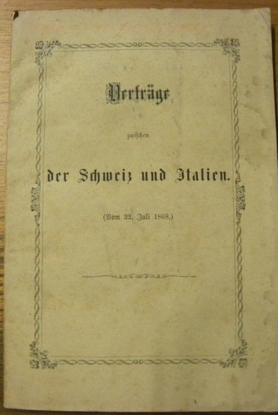 Verfräge zwischen der Schweiz und Italien (Vom 22. Juli 1868). | Rare and modern books |