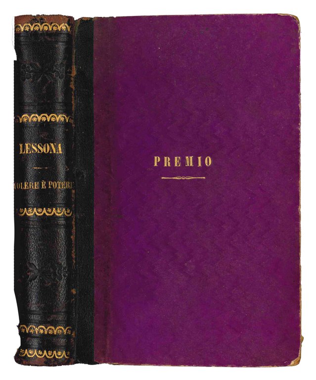 Mm. 182x117. Pp. XII, 488. Testo e frontespizio entro cornice. Cc. lievemente ed uniformemente brunite. Rilegato in mezza tela, titolo in oro al piatto ant. e al dorso. Sesta edizione di questa famosa raccolta di scritti e notizie biografiche di noti personaggi, da parte di Lessona (1823-1894), noto medico evoluzionista autore della prima traduzione italiana dell'opera di Darwin.
