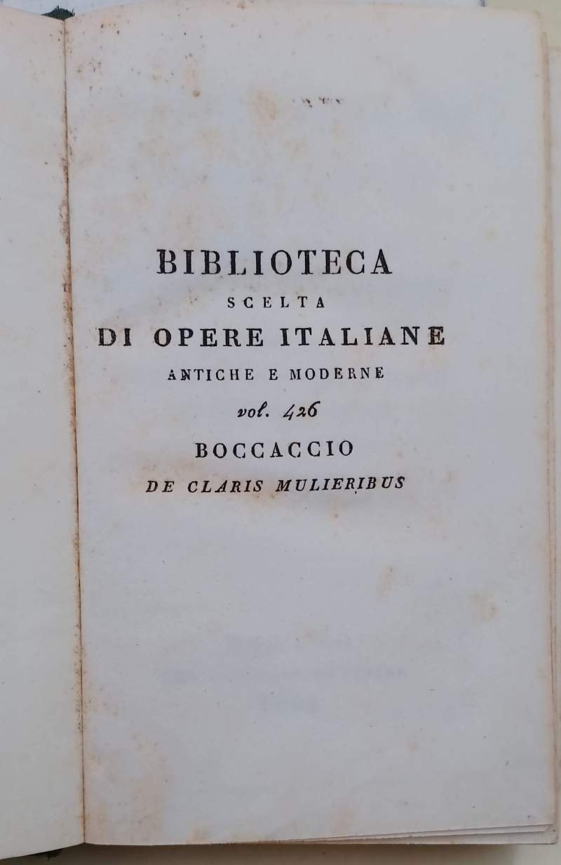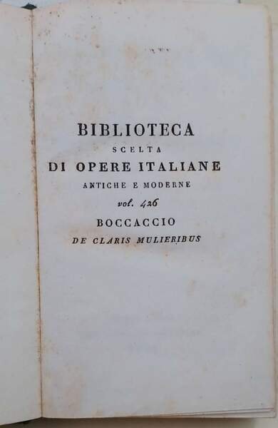 VOLGARIZZAMENTO DI MAESTRO DONATO DA CASENTINO DELL'OPERA DI MESSER BOCCACCIO DE CLARIS MULTIERIBUS..( 1841) | Rare and modern books | Boccaccio Giovanni