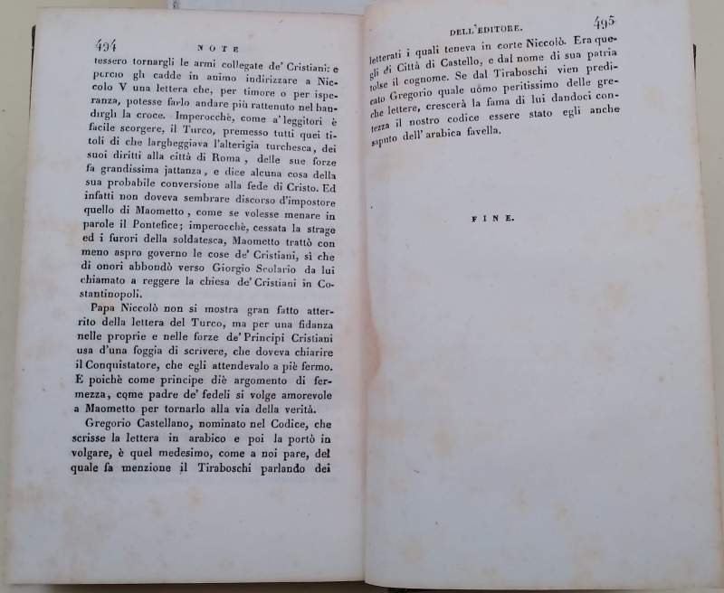 In 16', mz. pelle, piatti marm, tit. in oro al dorso, pp. 495;... binvenuto in un codice del XVI secolo dell'Archivio Cassinese pubblicato per cura e studio di D.Luigi Tosti monaco della Badia di Montecassino, seconda edizione. Mende al dorso, lievi abrasioni ai piatti, interni in buono stato, fioriture, alcune pieghe agli ang. sup., buon es. ***Due to bureaucratic reasons, books dated over 70 years old cannot be immediately exported, please contact us before placing the order.***