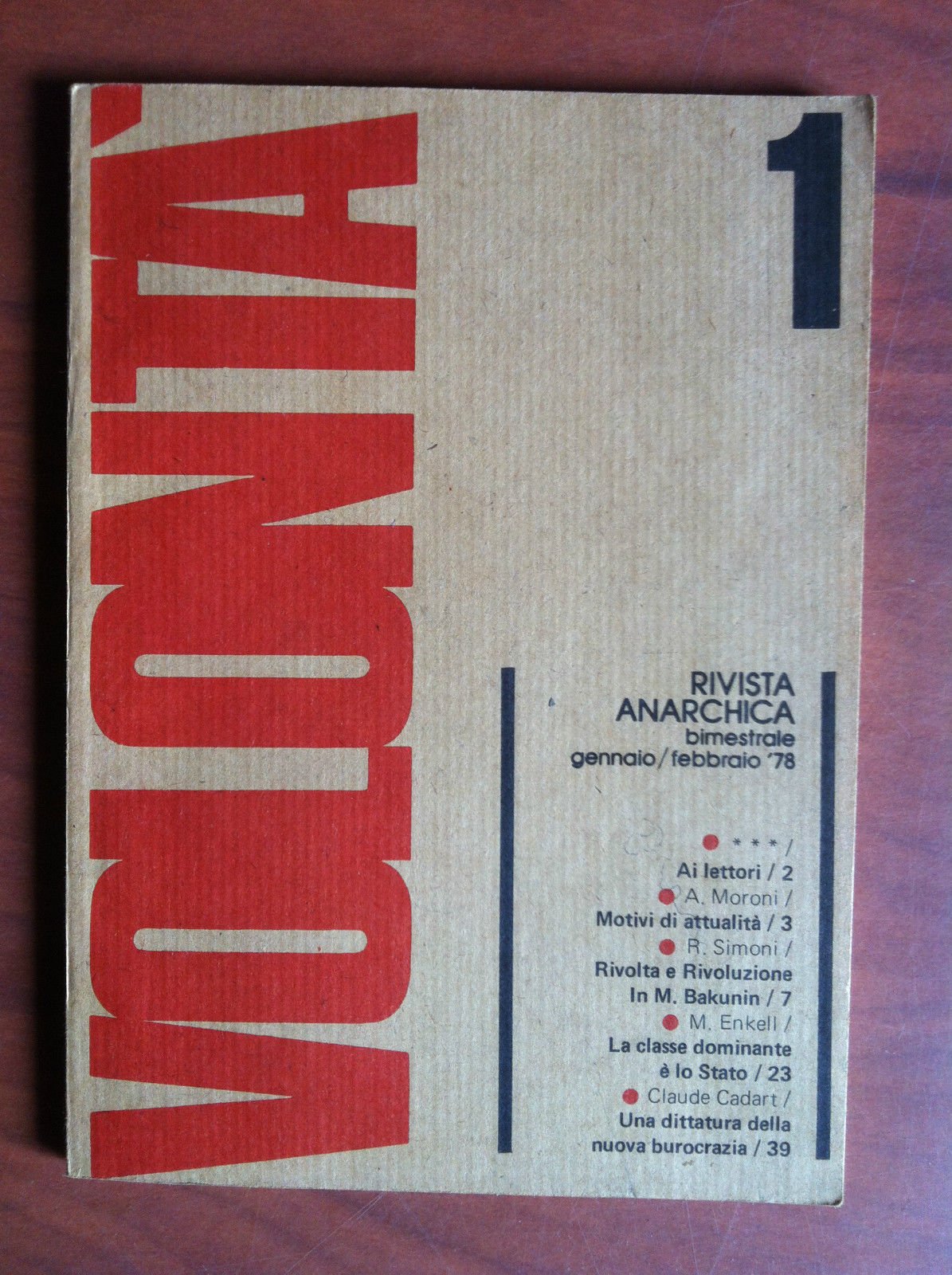 Volontà n^ 1 Gennaio/Febbraio 1978 Rivista Anarchica - E11120 | Rare and modern books | ,