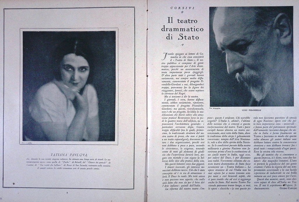 Comoedia di Dicembre 1926 Pavlova Pirandello Schure Herczeg Pitoeff Jia Ruskaja