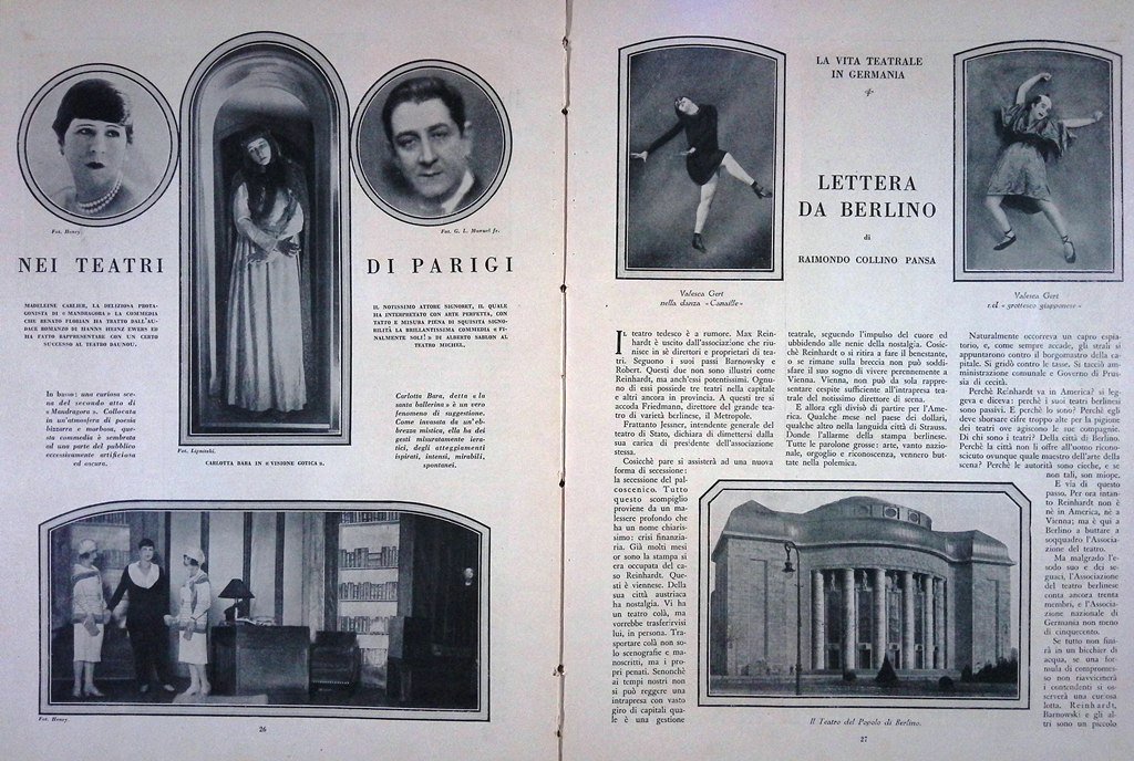 Comoedia di Luglio 1926 Zacconi Teatro Zagabria Salambò Bardos Habimah Budapest